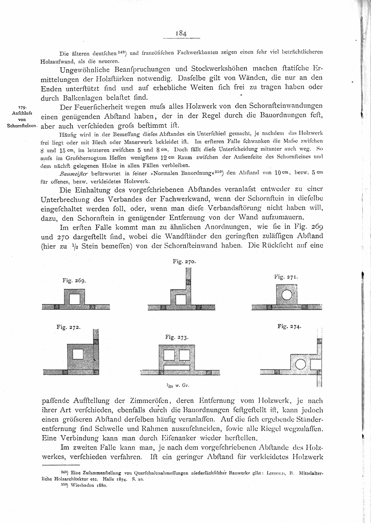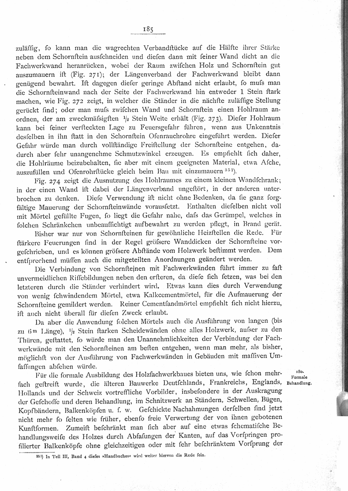 Baumeister befürwortet in seiner »Normalen Bauordnung«350) den Abstand von 10cm, bezw. 5cm für offenes, bezw. verkleidetes Holzwerk.