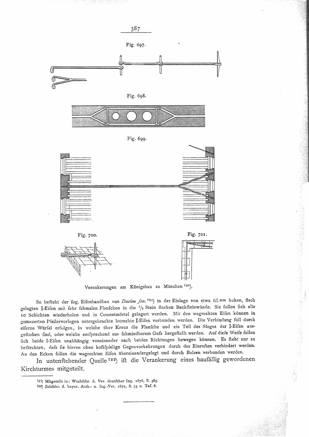 | Grafik: Verankerungen am Königsbau zu München720).Fig. 697, Fig. 698, Fig. 699, Fig. 700, Fig. 701 |