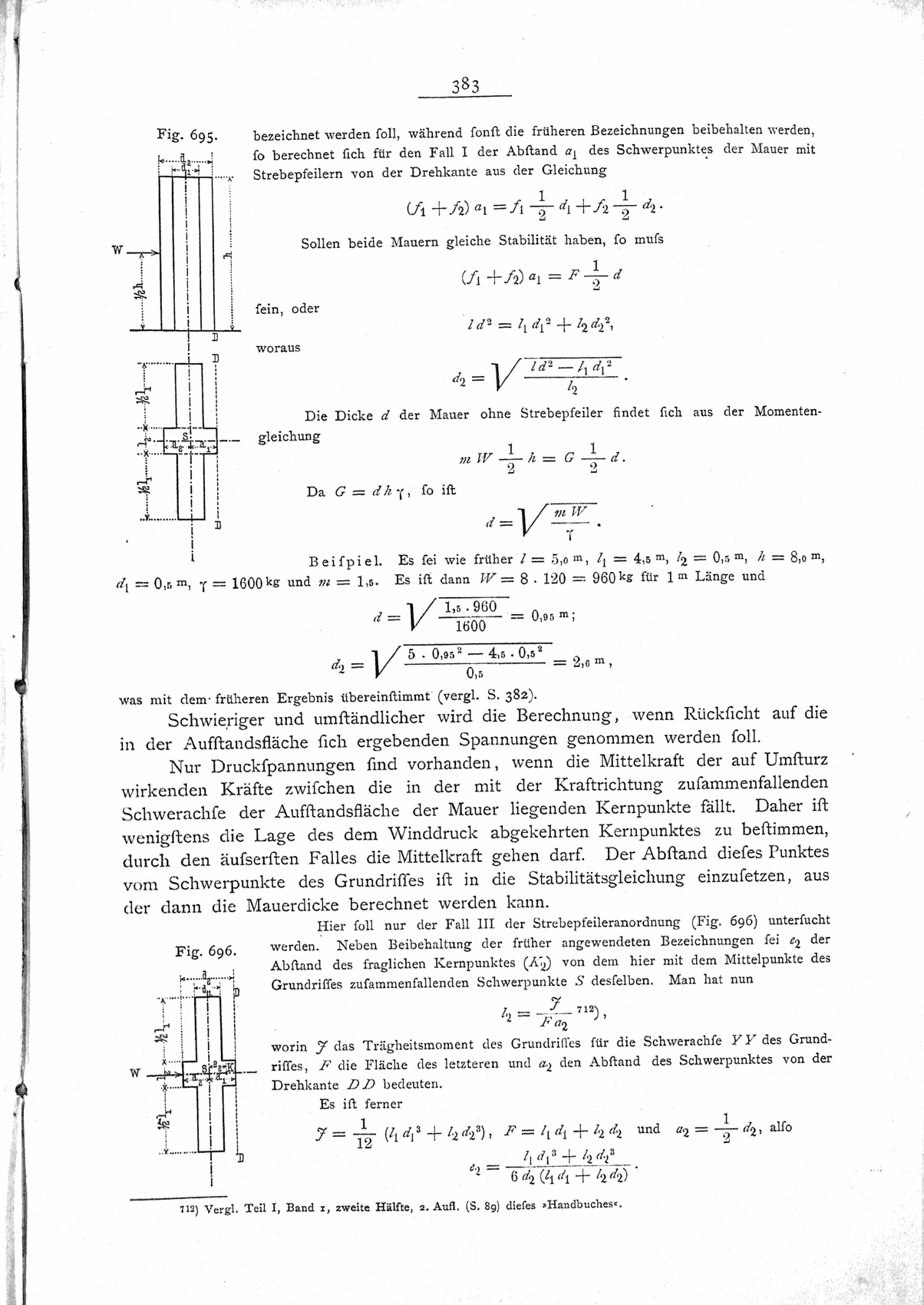 Ist f1 die Grundfläche des Mauerschildes, f2 die des Strebepfeilers und F die der Mauer ohne Strebepfeiler, deren Dicke mit d und deren Länge mit l