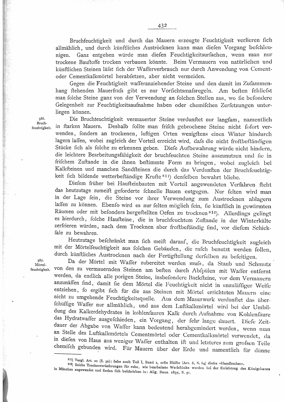 | 812) Solche Trockenvorkehrungen für rohe, wie bearbeitete Werkstücke wurden bei der Errichtung des Königsbaues in München angewendet und finden sich beschrieben in: Allg. Bauz. 1837, S. 51. ^ |